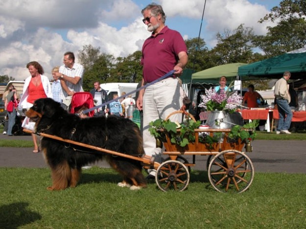 Andy Vogan with one of the Burnese Mountain Dogs and carrier