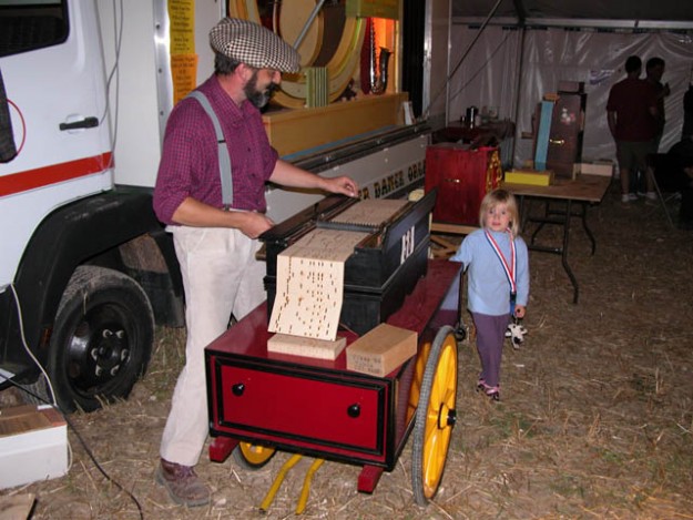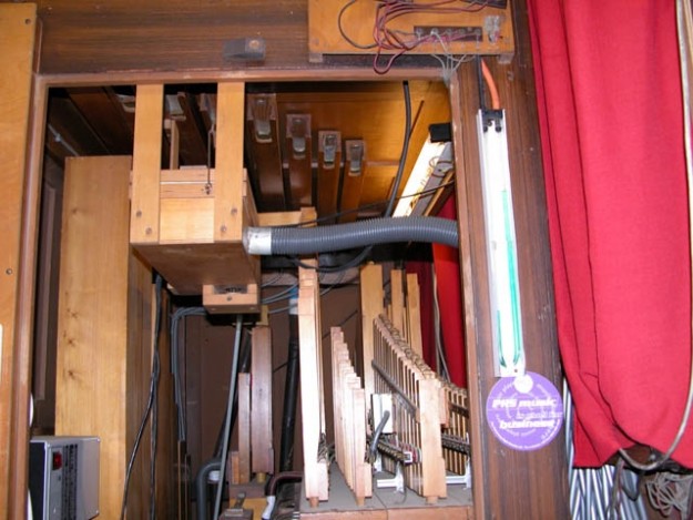 A close look at Decap organ 'Lucy'. Note the tremulant mechanism behind the pipes.