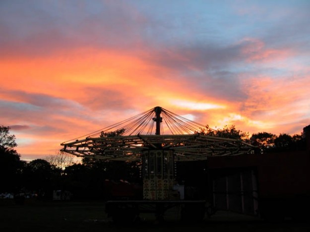 The Gallopers are dismantled under the last sunset of the 2006 Victoria Park Rally |